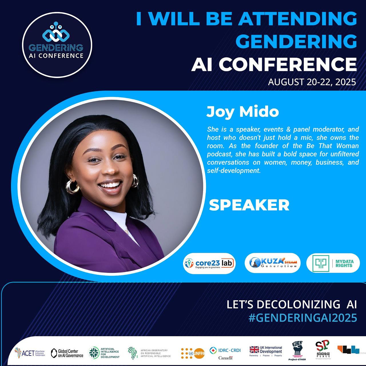 Joy Mido is a strategic storyteller and thought leader who blends sharp financial insight with creative clarity to help individuals and brands find their authentic voice. Driven by her belief that “the world needs your light,” she champions female empowerment through Be That Woman Podcast, a community-driven platform that sparks meaningful conversations at the intersection of Women, Money and Business. Then, as a host and moderator, she brings analytical depth and natural charisma to corporate panels and empowerment summits, guiding conversations with precision, warmth, and impact.